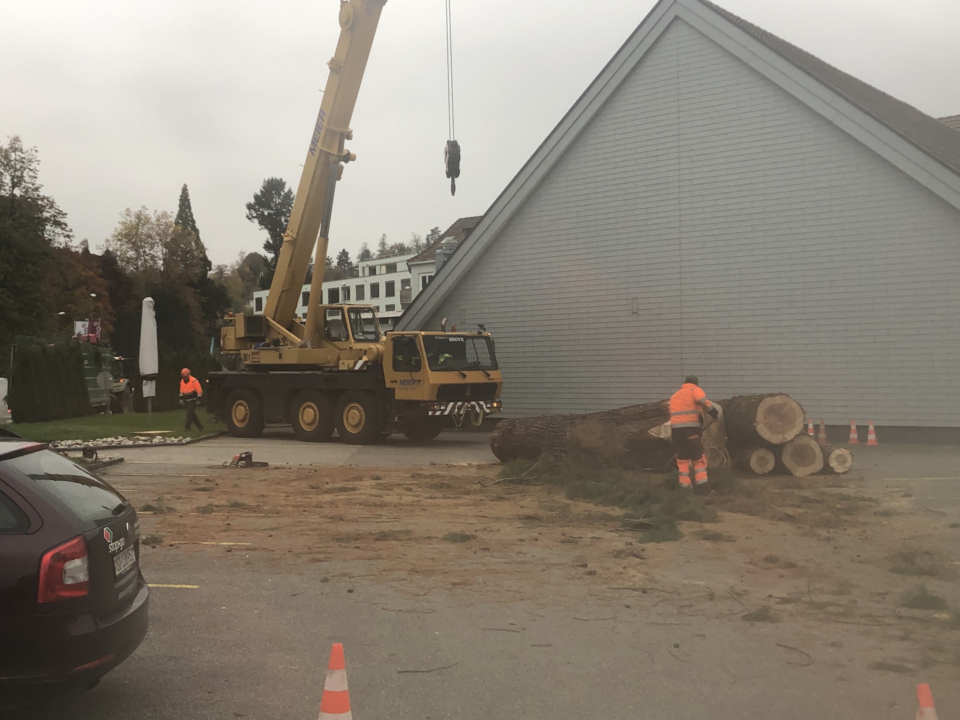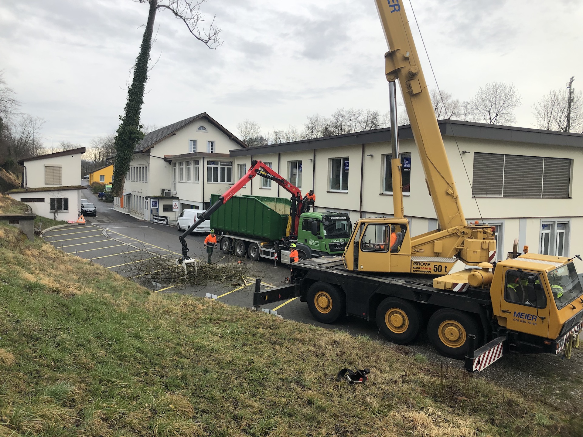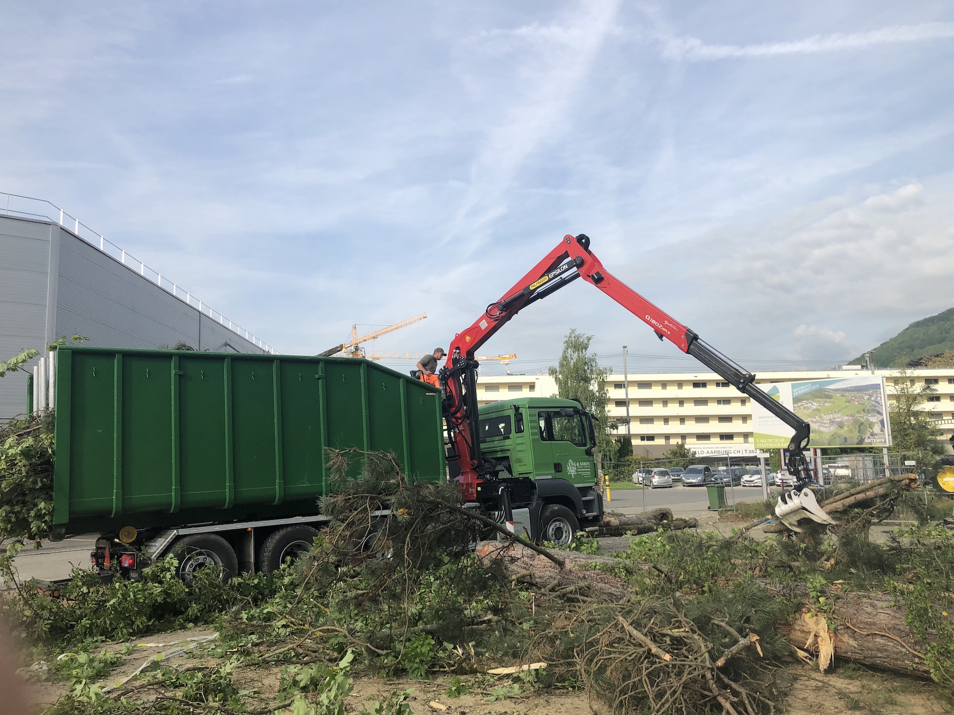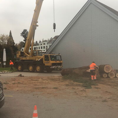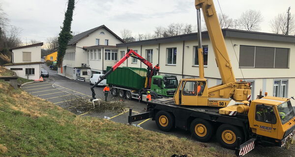 Bäume an der Strasse können wir mit dem Forwarder oder Kranwagen greifen.